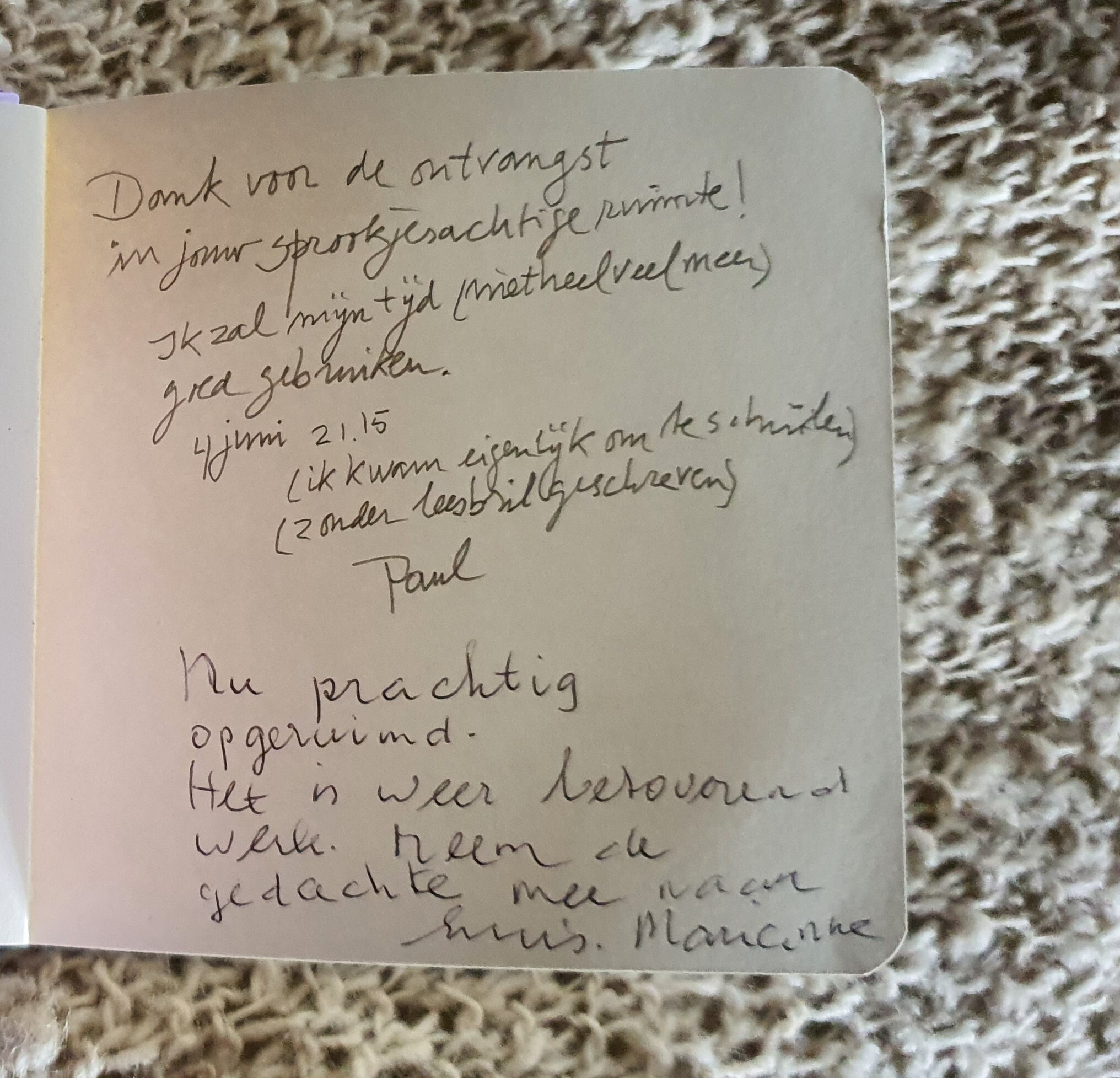 Culture Club journalist Ron Flens constateerde in 2022, in een korte documentaire van mijn werk in het Boetje van Klemat, dat ik mijn eigen sprookjes maak. “Sprookjesachtig” en “Betoverend” zijn inderdaad termen die vaak voorkomen in het gastenboek. Misschien creer ik inderdaad moderne sprookjes, waarin dappere wezens als Hoedsters, Vischwijven,